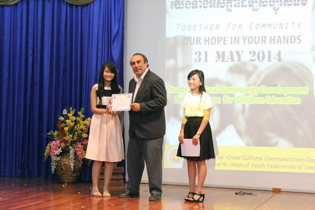 On Saturday May 31st, students of Cross Cultural Communication led by Professor Say Puthy, together with the Union of Youth Federation of Cambodia led by H.E. Hun Many, organized a charity event called Building Hope of Children Education. The event was held in order to raise funds to support poor children in very remote areas; especially, children in Oral, Kompong Speu province, who are in need of comfortable buildings for study.