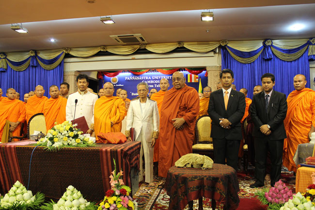 Accompanying Most Venerable Dr. Ashin Nyanissara was Samdech Preah Maha Ariyavamsa Sao Chanthol, Vice Inspector General of Buddhist Education of the Kingdom of Cambodia; H.E. U Cho Htun Aung, Ambassador of the Republic of the Union of Myanmar; H.E Veng Serey Vuth, Chairman of the PUC board of trustees; and Dr. Kol Pheng, PUC president.