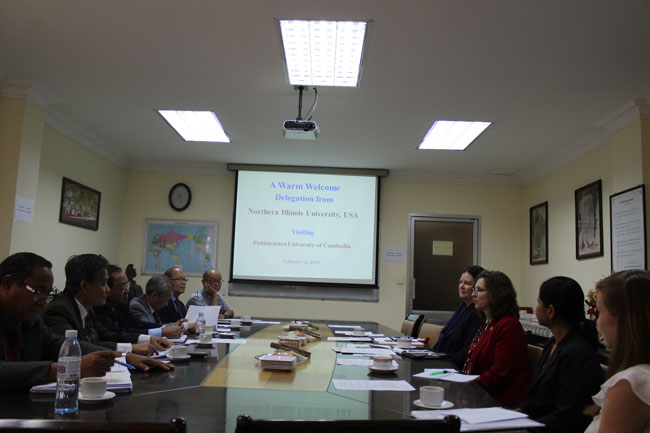 Two delegates from Northern Illinois University in Chicago, USA visited Paññāsāstra University of Cambodia (PUC) on February 16, 2015 to renew Memorandum of Understanding and strengthening Academic Cooperation between the two institutions.