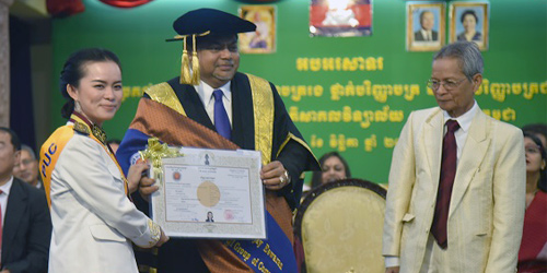 Dr. Kol Pheng was very excited to see all the graduates finished with joy though a few expressed that they were victims of their professors. “Please maintain your hard work toward your direction with proper education,” said Dr. Kol.