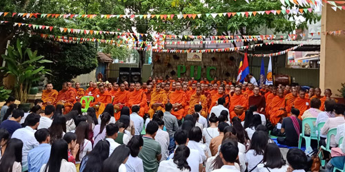 Roeurng Sreylin and Huy Lymeng are friends in different faculties and years of study, but they were at the university for the same purpose. Both of them were ready to offer foods, drinks, and some money to the monks. “The event I most wish to join in today is the Buddhist session because I can do good things through contributing some amount of money to the Buddhist monks whom many Buddhist followers believe that the monk will send good words to the Lord Buddha for their good activities,” said Sreylin.