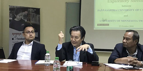 On October 22, representatives of the University Minnesota Twin Cities visited Paññāsāstra University of Cambodia (PUC) to discuss potential collaboration between the two institutions in the theme of student exchange, short-term programs, and research.