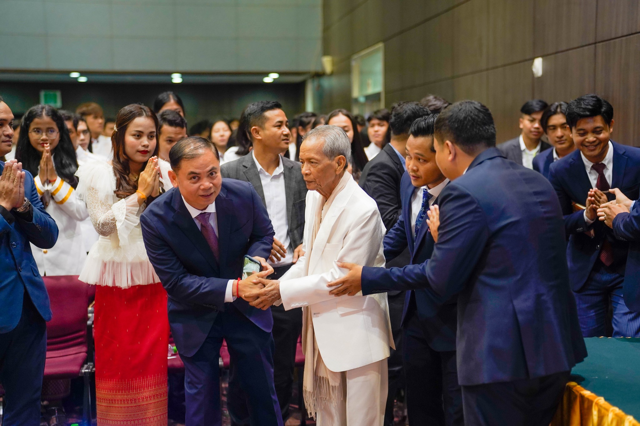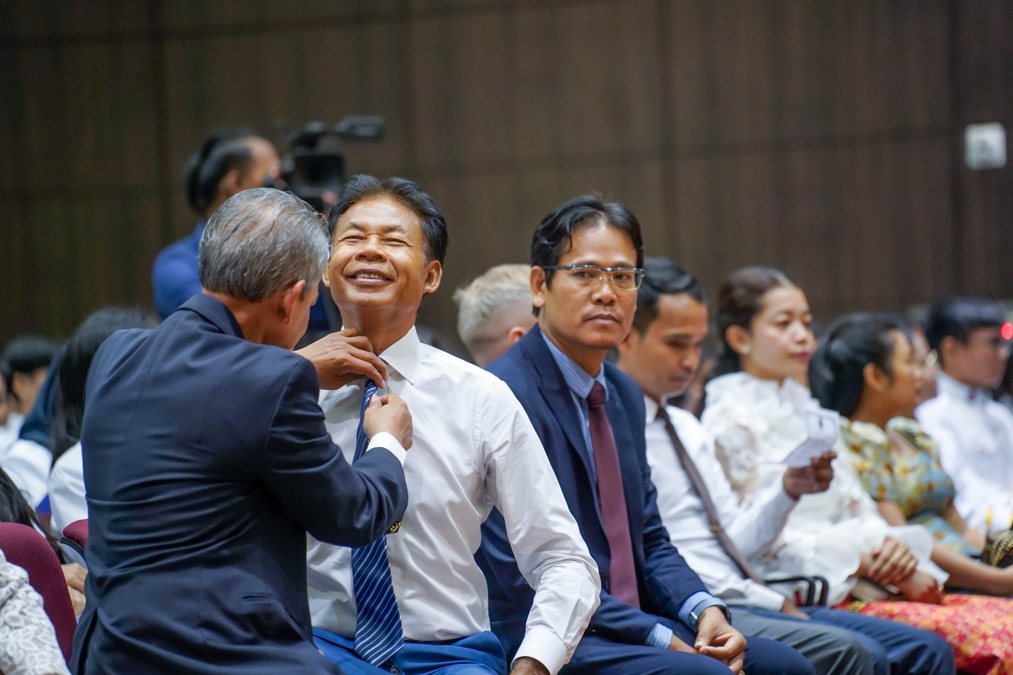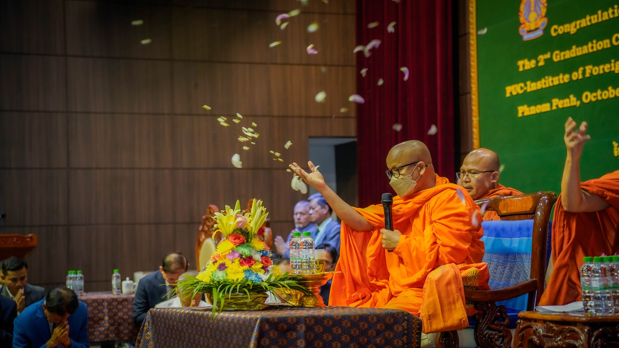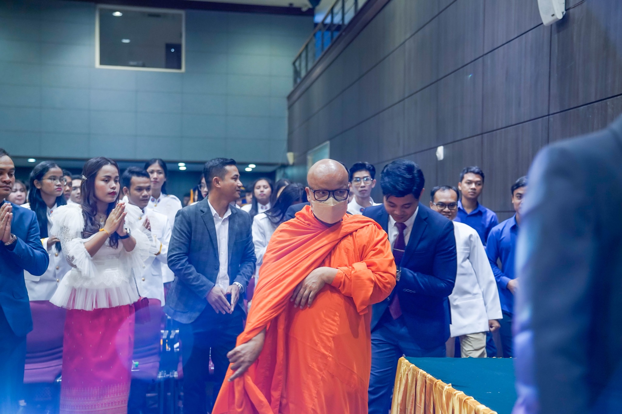 The distinguished ceremony was graced by the presence of esteemed guests, including Samdech Preah Dhammalikheta, Dr. Sao Chanthol, Royal Councilor and Supreme Councilor of the Mahanikaya of the Kingdom of Cambodia; Dr. Kol Pheng, Founder and President of Paññāsāstra University of Cambodia and Paññāsāstra International School; H.E. Veng Sereyvuth, Chairman of the Board of trustees of Paññāsāstra University of Cambodia; and H.E. Dr. Korm Ribaun, Senior Vice President of PUC-IFL & University Relations.